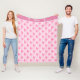 Hier ist die perfekte Fleecedecke für Ihre Ballerina! Auf einem blassrosa abstrakten Hintergrund wird ein zweifarbiges Tanzmuster auf der Oberfläche wiederholt. Oben befindet sich eine solide passende rosa Band mit eigenem Text und zwei Tänzern in Weiß.