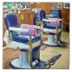 Zwei Barberstühle mit rosa gestreiften Barberkappe Fliese