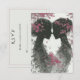 Süße Hochzeitsantwortkarte für lesbisches, LGBTQ-Paar. Zwei handgezeichnete, silhouettenhafte rosa und schwarze Bräute, die sich gegenüberstehen mit rosa Blatt-Akzente. Sie haben ihre Haare hochgesteckt und rosa Rosen im Haar, süße Bleistiftzeichnung für Ihren besonderen Tag.