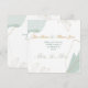 Dies ist die hübsche Einladung für eine lesbische Hochzeit. Eine gerahmte, goldene quadratische Einladung mit einem schönen Rand von hellgrünen und blauen Marmoreffekten und Blätter. Sehr minimalistisch und elegant.
