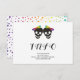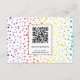 Zwei Schädelbräute und Konfetti in Regenbogenfarben Halloween lesbische Hochzeitsdetails und Infokarte. Dieses Hochzeitsdesign zeichnet sich durch die Schädel von zwei Bräuten aus, mit Bögen in Regenbogenfarben und farbenfrohen Konfetti darum herum. Die Rückseite enthält ein Muster von bunten Konfetti und einen QR-Code für das Scannen und Besuchen der Hochzeitswebsite.