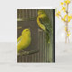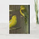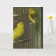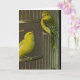 Diese Grußkarte kennzeichnet eine Kunstmalerei von zwei Canaries, die auf dem offenen Käfig gehockt werden. Eine perfekte Karte für Vogelbeobachter und Vogelliebhaber ebenso. Addieren Sie Ihre eigene Mitteilung, um diese Karte zu personifizieren.