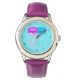 Kinderuhr aus Edelstahluhr mit lila Lederarmband