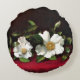 Martin Heade, amerikanischer Künstler, Kunstmalerei, Zwei Cherokee Rose auf Red Velvet, Rundkissen.