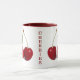 Zwei Cherries Design Coffee Tasse mit anpassbarem Text.