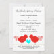 Niedliche Rote Vögel mit Aqua Heart Gay Lesben Hochzeit Einladung. Zwei Küken werden getroffen! Einfach anpassbar für Sie, um Ihre eigenen Details hinzuzufügen. Sauberes, modernes Design.