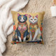 Zwei dekorative Blumenkatzen auf goldenem Hintergrund.
