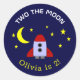 Dieser Dame Two The Moon Geburtstagsaufkleber ist perfekt für ein Party zum zweiten Geburtstag. Es verfügt über ein kleines Raketenschiff, das in den Mond und die Sterne fliegt.