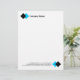 Ein Business-Letterhead-Template-Design mit einem zweifarbigen, doppelquadratischen oder rautenförmigen Dekormotiv, das in der oben verlassen Ecke, 1/2 Zoll von den Kanten des Papiers entfernt, sowie in der unteren rechten Ecke, wo das Motiv gedreht wird, um die Töne umzukehren. Firmenname ausgerichtet neben dem oberen Motiv mit E-Mail, Web, Adresse und Telefondaten, die am unteren Motiv ausgerichtet sind. Dieses einfache, aber attraktive berufliche Design lässt sich auf viele Arten anpassen.