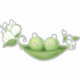 Mit den wohl niedlichsten Erbsen der Welt bringen diese beiden Erbsen in einem Köpfchen ein Lächeln. Kleine weiße Blume und Grünpflanzen schmücken die Grenze.