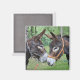 Ein Magnet mit einem Foto von zwei freundlich-braunen grauen Eseln, der Nasen mit sanften Augen berührt und die fließenden Ohren nach vorne zeigen. Das Foto wurde auf einer Show in Frankreich aufgenommen, wo Esel sehr beliebt sind.