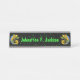 Dieser Schreibtisch oder die hängende Namensschild ist schwarz mit hellgrünen kleinen Punkten und einer farbenfrohen abstrakten Eidechse auf einem Zweig mit einem Blatt an jedem Ende. Passen Sie Ihren Namen mit der Vorlage an.