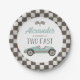 Growing up Two Fast Race Auto 2. Geburtstag Platte mit blauem Retro Rennwagen.
