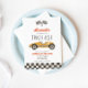 Zwei Fast Race Car 2. Geburtstag Einladung mit gelbem Retro Rennwagen.