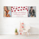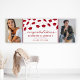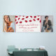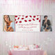 Modernes Party-Banner mit weißem Hintergrund, der sich farbig ändern lässt, 2 Fotos der Absolventen, abnehmende rote Mörtel-Kaps und eine moderne Textvorlage, die leicht zu personalisieren ist.