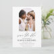 Maßgeschneidertes und personalisiertes Foto auf der Vorderseite und Rückseite von eleganten und modernen Save the Date Wedding Einladungen - inklusive wunderschöner und eleganter Schriftzeichen-Typografie für die besondere Hochzeitstagsfeier.