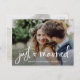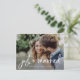 Diese skurrile und moderne Entstehungs- oder Heiratsankündigung auf der Postkarte enthält zwei Ihrer liebsten Fotos, mit trendiger, rustikaler Handschrift und einem kleinen, stilvollen Herz und sagt: "Just heiratet". Auf der Rückseite befindet sich ein zweites Foto mit einem durchsichtigen Overlay, und weitere Details und Informationen zur Hochzeit. Ein einfaches und trendiges Aussehen, das ist der perfekte Weg, um Familie und Freunde lassen wissen, Sie gebunden den Knoten!
