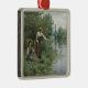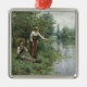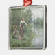 Zwei Frauen fischen auf dem Gras am Fluss Ornament Aus Metall
