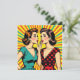 Pop ist eine leere Karte. Zwei Comicen erzählen einander Geheimnisse! Pop Art Comic buchen Freunde.