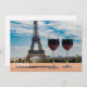 Zwei Gläser Wein auf Eiffelturm und Pariser Skyline Hintergrund.