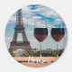Zwei Gläser Wein auf Eiffelturm und Pariser Skyline Hintergrund.