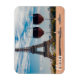 Zwei Gläser Wein auf Eiffelturm und Pariser Skyline Hintergrund.