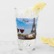 Zwei Gläser Rotwein mit Snacks mit Blick auf Paris und Eiffelturm. Glas Rotwein mit verschiedenen Snacks - Teller mit Schinken, geschnitten, blauer Käse. Ein paar romantische Feste. Cafe mit Aussicht.