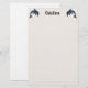 Dieses Schreibpapier ist ein texturiertes weißes Aussehen mit zwei glitzernden Aussehen springenden Delphine, die dunkelblau und weiß oben sind. Passen Sie Ihren Namen oben mit der Vorlage an.