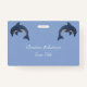 Dieses Namen- oder Identifizierungs-Abzeichen ist mit zwei glittery Delphinen in dunkelblauem und Weiß in einer springenden Position auf der Front und einem größeren Delphin auf der Rückseite hellblau. Fertigen Sie Ihren Namen und Informationen mit den Vorlagen besonders an.