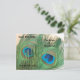 Romantische Pfauenfederfotografie mit atemberaubender goldener Touch. Diese Pfauenfedern haben eine schöne Farbe und das ist ein guter Weg, um Menschen zu lass wissen, Save the Date für Ihre Hochzeit. Der helle goldene Hintergrund hebt die Farben in den Pfauenfederaugen hervor.