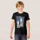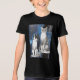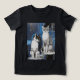 T - Shirt in einer Abbildung zweier Katzen sitzt anmutig vor einem tiefblauen, abstrakten Hintergrund. Die realistischen Pelztexturen mit kühnen Linien und geometrischen Elementen schaffen eine moderne surreale Atmosphäre. Ihre ausdrucksstarken gelben Augen kontrastieren auffallend mit der coolen Umgebung.