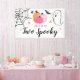 Zwei Spooky! Halloween 2. Geburtstag Party Banner. Spooktacular Geburtstagsbanner mit rosa Kürbis und Sternen und Spinnen.