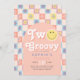 Die Einladung zum 2. Geburtstag dieser großartigen Girls vereint Retro-70er-Vibes mit niedlich rosa Motiven, Blumenakzenten und pastellfarbenen Schachfiguren. Vollständig anpassbar, enthält es Platz für Ihre Party-Details in elegantem Skript. Ideal für einen "Two Groovy" Geburtstag, verleiht dieses spielerische, mädchenhafte Design dem besonderen Tag Ihres Kleinen Charme!