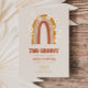Groovy Retro 2. Geburtstagsfeier Party Einladung mit einer erdig getönten 70er inspiriert Illustration eines Regenbogens und Molkereien.