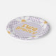 zwei Groovy! Retro Schachbrett Print mit Daisies Geburtstagsparty Teller in lila.