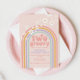 Retro inspirierte Zwei Groovy 2. Geburtstagseinladung mit Hippie-Stil pastellfarbenen Regenbogen, und Gänsebläschen