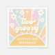 Zwei Groovy Retro inspirierte Servietten zum zweiten Geburtstag mit 70er-Jahren-Stil und bohligen Schriftart und Pastellfarben