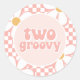 zwei Groovy! Retro Schachbrett Druck mit Daisies Geburtstagsparty Aufkleber in Rosa.