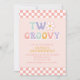 Zwei Groovy Retro Daisy und Schachbrett 2. Geburts Einladung