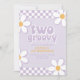 Zwei Groovy Retro Karo Lilac Daisy Einladung