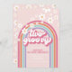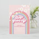 Zwei Groovy! Retro inspirierte die Einladung zum 2. Geburtstag mit Schriftart und Farbtönen im Stil der 70er Jahre, Regenbogen und Gänseblümchen.