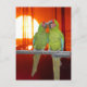 Diese beiden Niedlichen grünen Papageien, die wir vor einem romantischen Sonnenuntergang platziert haben. Sie können Ihren eigenen Text hinzufügen, wenn Sie möchten.