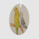Hand zeichnend in farbigen Bleistiften, die zwei Budgetiervögel auf einem Holzstock darstellen.