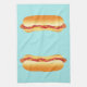 Dieses Küchentuch bietet eine köstliche Cartoon-Illustration eines Hot Dog Snacks. Der Hot Dog hat einen leckeren Bun und es gibt sowohl Ketschup als auch Senf auf der Wurst.