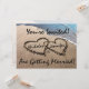 "You're Invited!" in stylish Text, oder ändern Sie einfach die Formulierung zu diesen beliebten Hochzeitseinladungen. Ein wunderschönes, originelles berufliches Foto von zwei Herzen geschrieben, gezeichnet im Sand entlang des blauen Ozeanwassers, um Liebe und Romantik. Fügen Sie einfach den Namen der Braut und des Bräutigams in jedes Herz ein, wie gezeigt, und das Datum darunter. Legen Sie Ihren eigenen Text, Ihre Details und Informationen auf die Rückseite dieser beliebten Einladung. Ein tolles Konzept für kommende Sommerferien, Verlobungen am Strand, Jubiläen oder Save the Date Einladungen und Ankündigungen für das glückliche Paar.