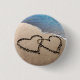 Schönes, originelles Foto von zwei Herzen geschrieben im Sand entlang des blauen Ozeanwassers, um Liebe und Romantik. Ein tolles Konzept für kommende Hochzeiten im Sommer.