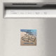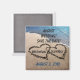 Schönes, originelles Foto von zwei Herzen geschrieben, im Sand entlang des blauen Ozeanwassers gezeichnet, um Liebe und Romantik zu signalisieren. Legen Sie einfach das Datum des besonderen großen Tages ein und legen Sie Ihre individuelle Namen in die Herzen, um sie zu personalisieren. Tolle Idee für die kommende Sommer Strand Hochzeit in Urlaubsort Save the Date, oder leicht ändern Sie den Text für danke Gastgeschenke, etc. Ein einzigartiger, quadratischer Magnet, der für Ihre Gäste sorgt.