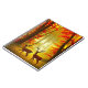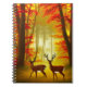 Notebook in einer Abbildung von zwei Hirschen, einem Buchsen und einem Dock, vor einem Hintergrund von Herbstwäldern, in Brauntönen, goldgelben und rostorangefarbenen Tönen