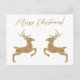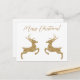 Desteis hüpfende Hirschformen in digital geschaffenen Imitaten goldgelben Glitzer-Textur. Die beiden Hirsche stehen einander gegenüber, und es gibt einen personalisierbaren Textbereich, der nun lautet: "Frohe Weihnachten!". BITTE BEACHTEN SIE: Das Design ist ein digital erstelltes Bild, das auf dem Produkt gedruckt wird.