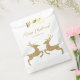 Desteis hüpfende Hirschformen in digital geschaffenen Imitaten goldgelben Glitzer-Textur. Die beiden Hirsche stehen einander gegenüber und es gibt zwei personalisierbare Textbereiche darüber. BITTE BEACHTEN SIE: Das Design ist ein digital erstelltes Bild, das auf dem Produkt gedruckt wird.